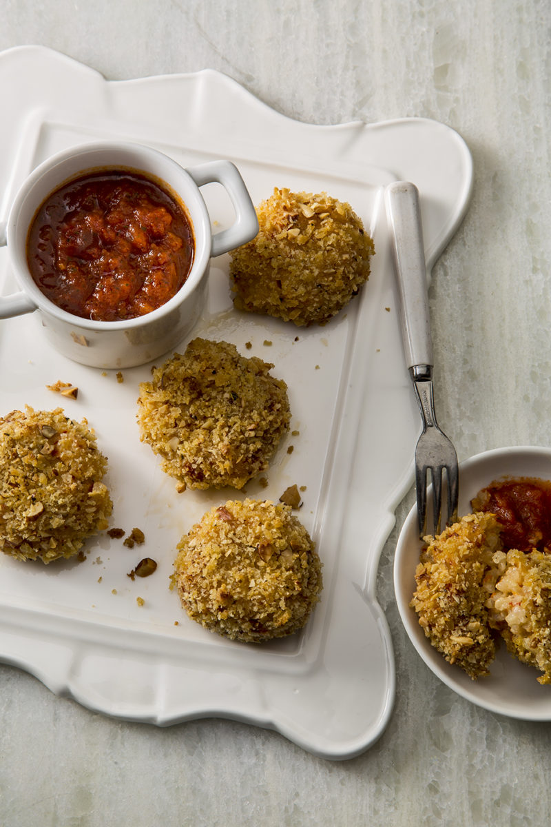 Pour échapper à la quarantaine, partez en Sicile avec ces arancini aux tomates de la « petite Italie », de délicieuses croquettes panées et recouvertes d’amandes fumées pour un goût unique.